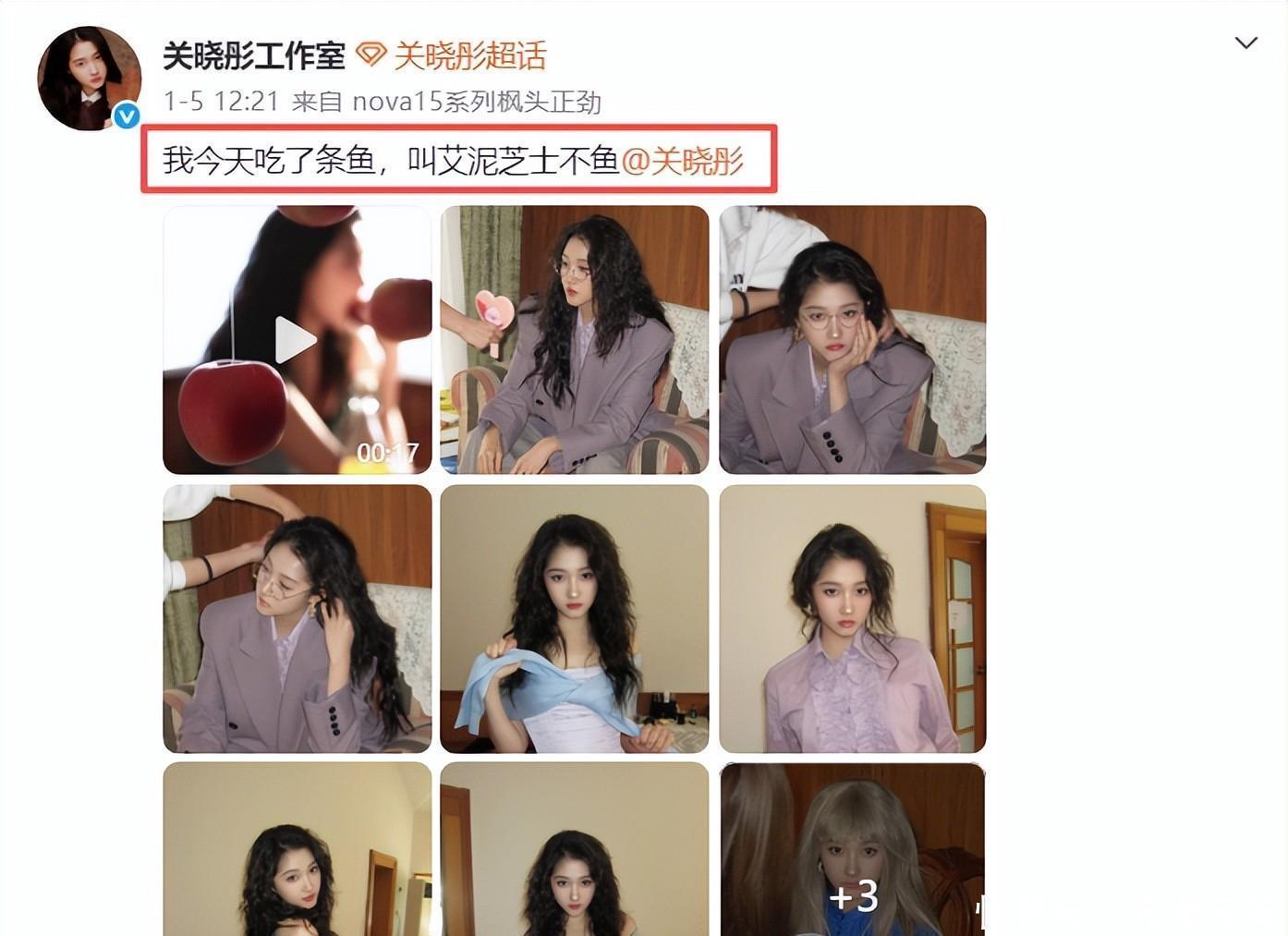 而下面还配了很多图片,有一张图片的眼睛非常奇怪,是个红色的瞳孔,可能是因为光线的问题吧,也有可能是因为相机参数没调好。但是给人的感觉真的很恐怖,其实关晓彤的脸非常精致,是非常标准的鹅蛋脸,五官也十分立体。